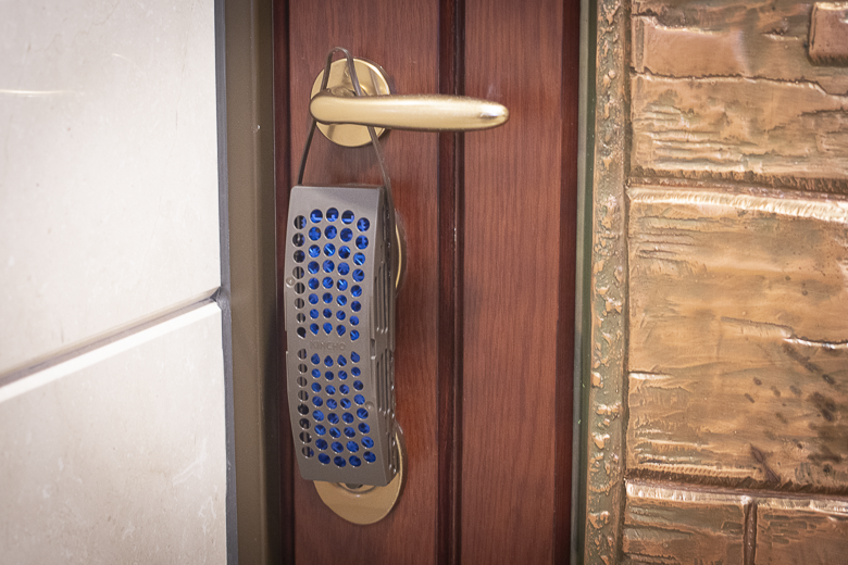 外觀特別的高雅,掛在入口處的門把也不奇怪,外型設計上有點厚度加長型,一樣的3D網格