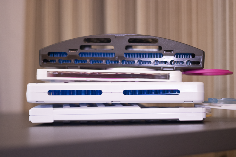 疊疊樂給大家看比較,最胖是金鳥的黑色玄關款,最瘦小是鱷魚牌的掛片